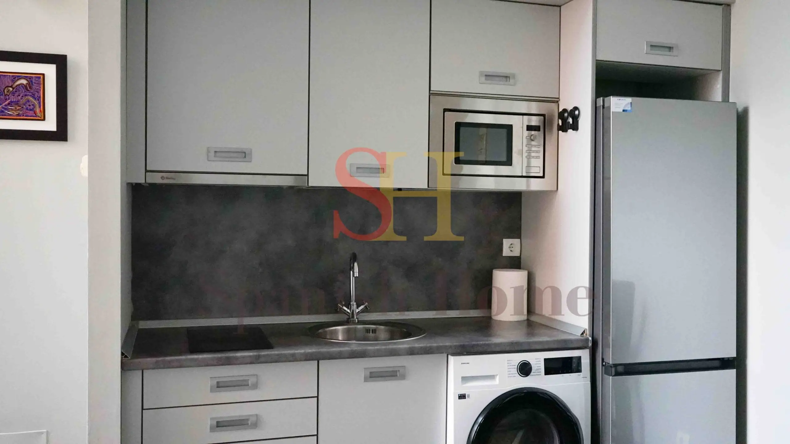 Dispone de cocina americana equipada con electrodomésticos de primeras marcas.
